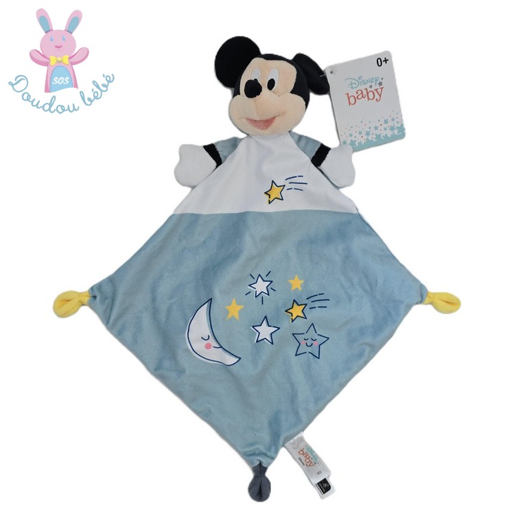 Doudou Souris Mickey bleu blanc noir étoiles DISNEY