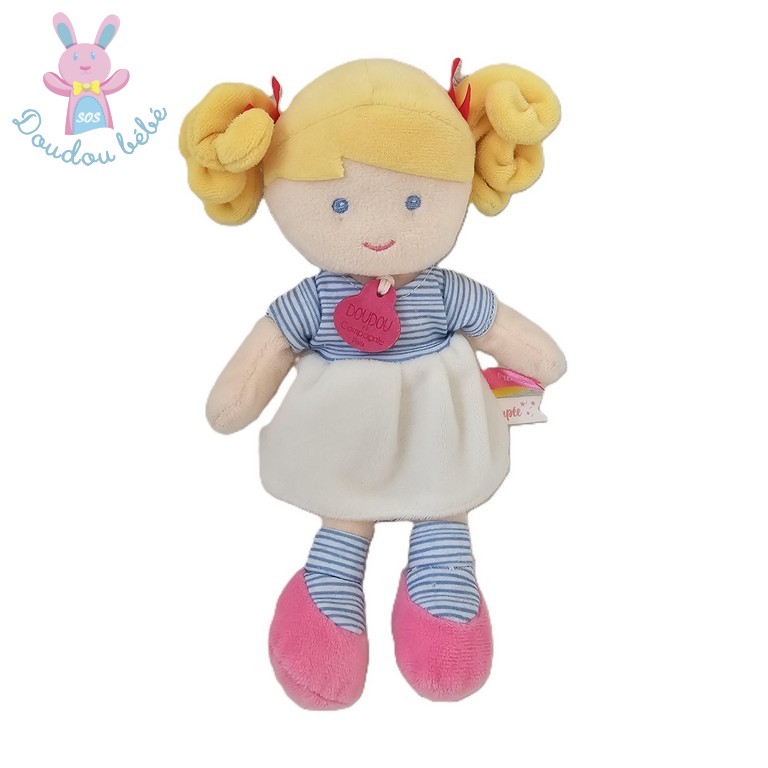 Doudou Poupée Demoiselles Ondine blanc bleu DOUDOU ET COMPAGNIE