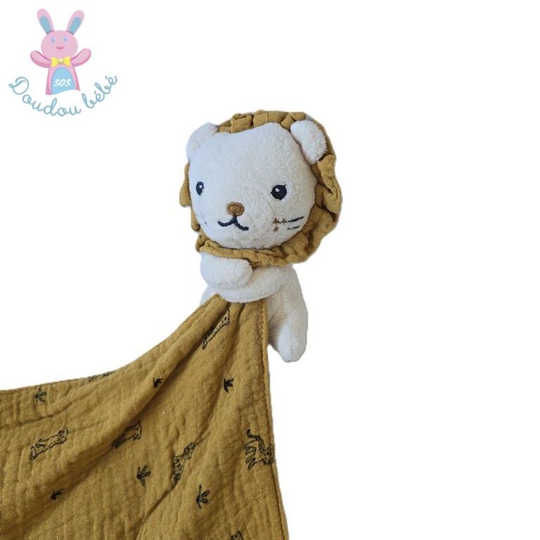 Doudou Lion beige mouchoir jaune moutarde MAISONS DU MONDE