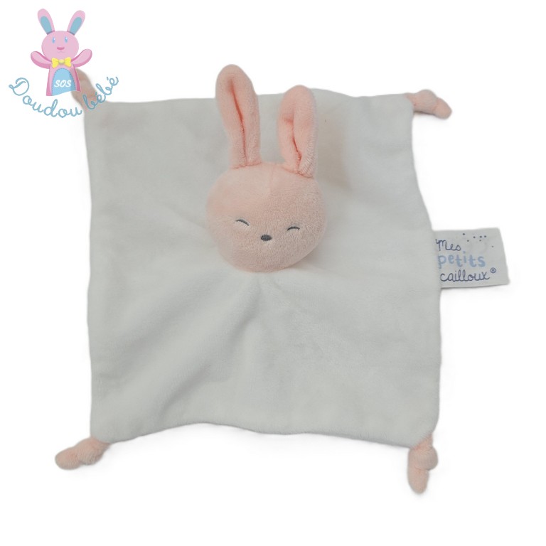 Doudou plat Lapin dormeur blanc et rose MES PETITS CAILLOUX