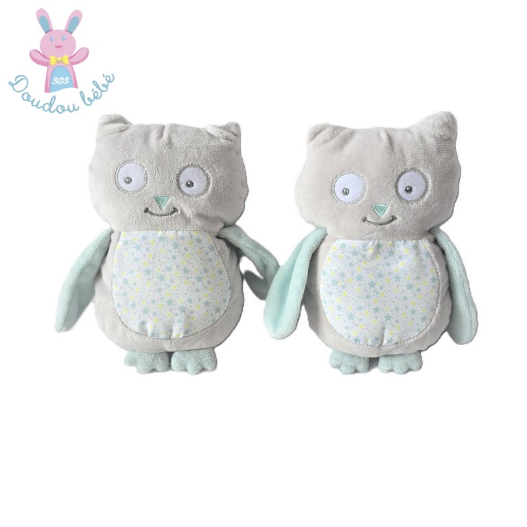 Lot de 2 doudous Chouette Hibou gris bleu étoiles ARTHUR ET LOLA