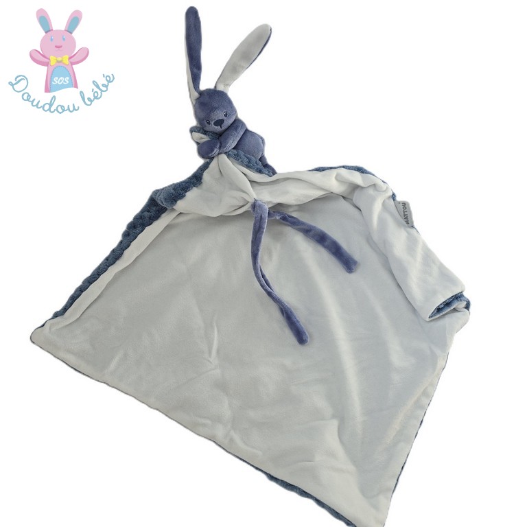 Doudou Lapin Lapidou couverture blanc et bleu foncé gaufré NATTOU