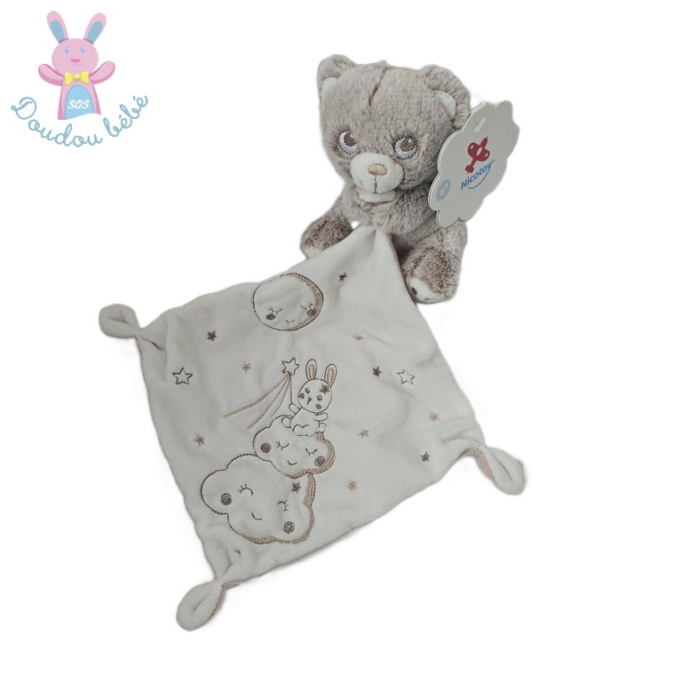 Doudou Ours beige blanc mouchoir nuages étoiles NICOTOY SIMBA