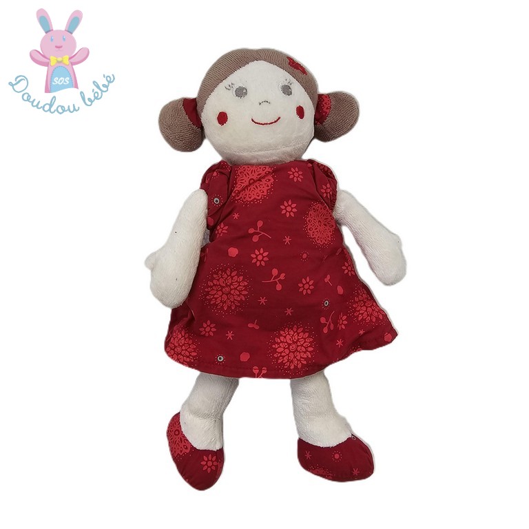 Doudou Poupée chiffon blanc robe rouge SUCRE D’ORGE