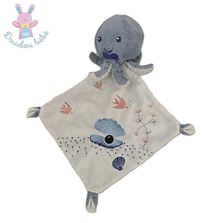 Doudou Pieuvre Poulpe bleu blanc mouchoir TEX BABY