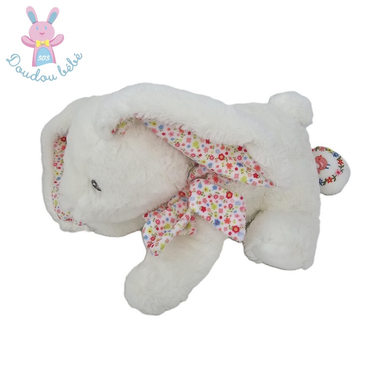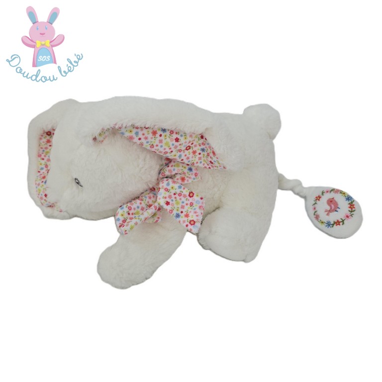 Doudou Lapin musical blanc et fleurs nœud POMMETTE
